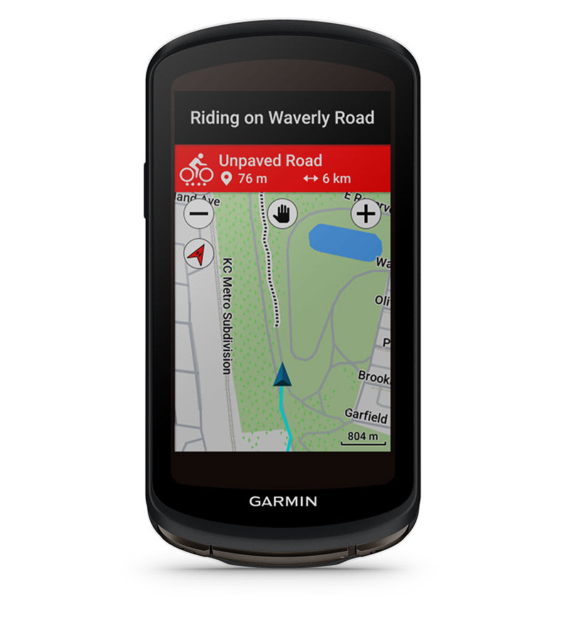 Feel free to pause route guidance and off-course notifications while you go off-course to explore. When you’re ready to get back on track, Edge 1040 Solar will show you the way.