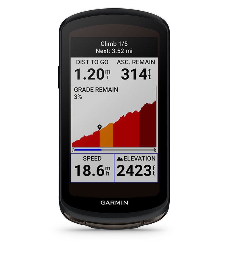 Automatically see the remaining ascent and grade when you’re climbing while following a route or course. This helps you gauge your effort and see how much you have left to suffer. You can even save your climbs for postride review on your device or in the Garmin Connect app.