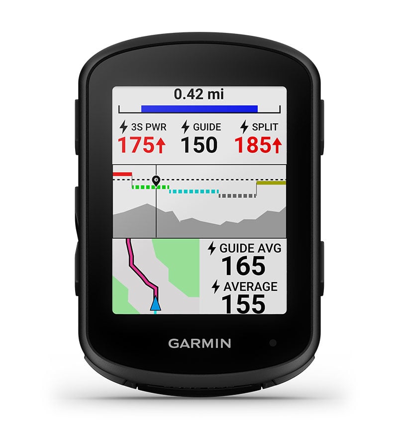 Manage your efforts with the power guide feature, which recommends power targets throughout a course, when paired with your compatible power meter.