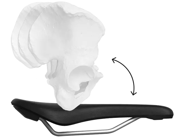 The shape and size of the saddle must match the sit bone width of the rider to maximize comfort and enjoyment. The pelvic bone has a unique V-shaped and the saddle must offer the sit bones a large contact surface with the ability to meet the demand of different sitting positions. Various saddle widths are offered so that the usable seat surface corresponds to the riders unique sit bone distance. The more forward and aggressive the rider sits, the further forward the sit bones contact the saddle.